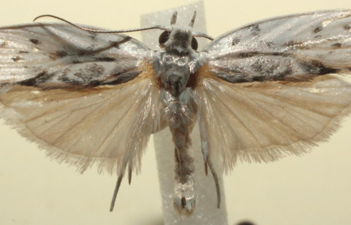 Figura 1. Adulto de <i>Antaeotricha</i> Janzen07 (Depressariidae), vista dosal. Voucher 01-SRNP-3923-DHJ338760.jpg.