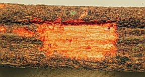 La corteza es de color café oscuro y tiene lenticelas muy evidentes.