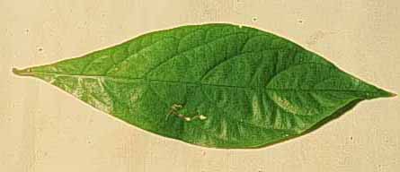 Simples,opuestas, de forma lanceolada y margen entero. Largo aproximado de8-20 cms.Peciolo cilindrico. Con estipulas interpeciolares.