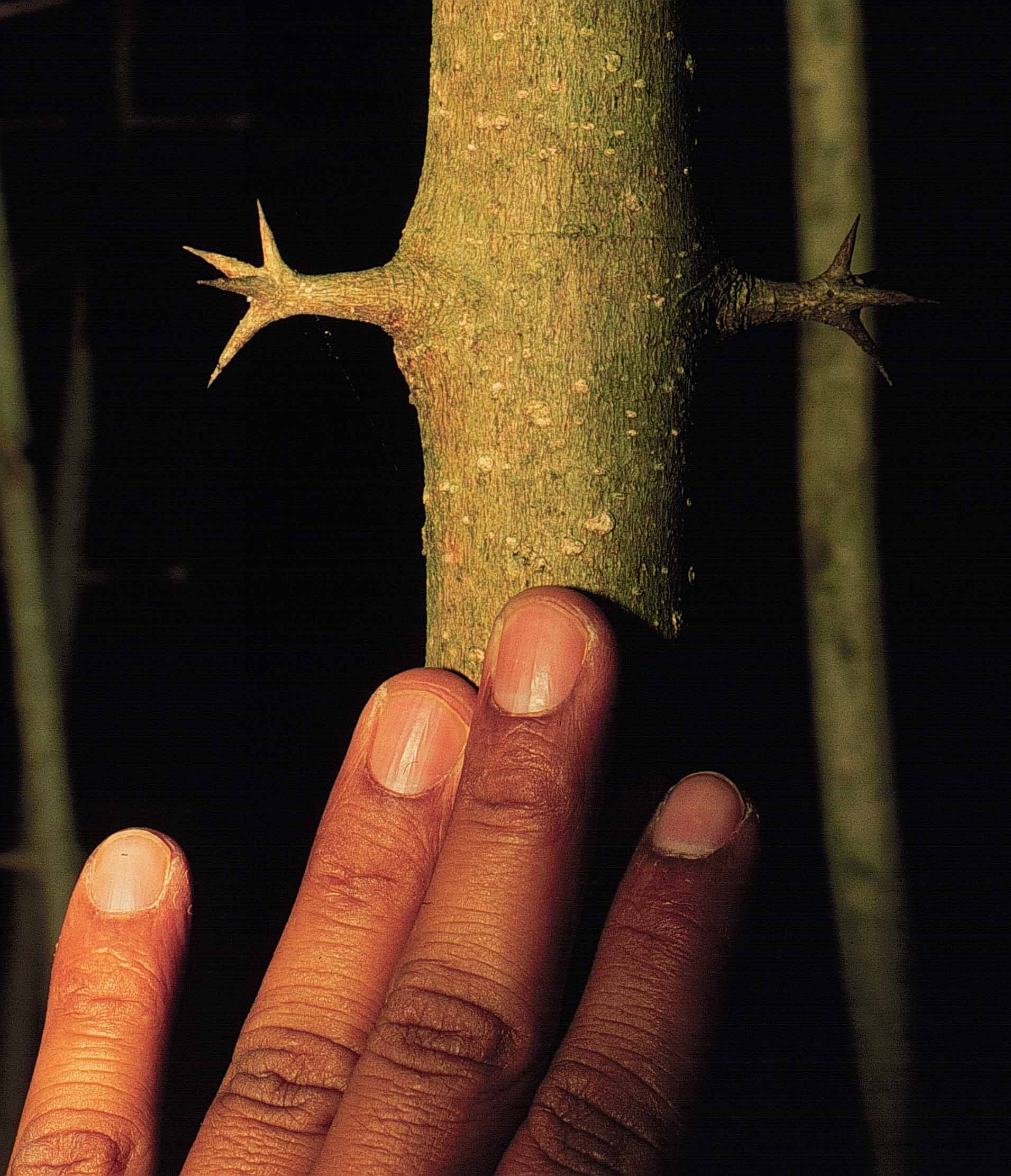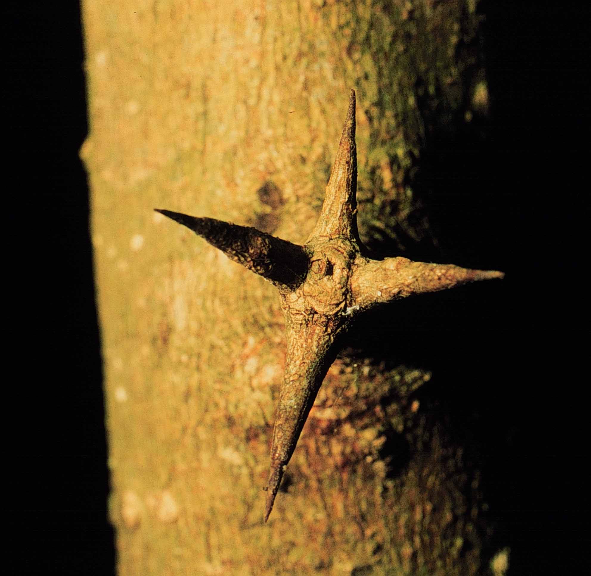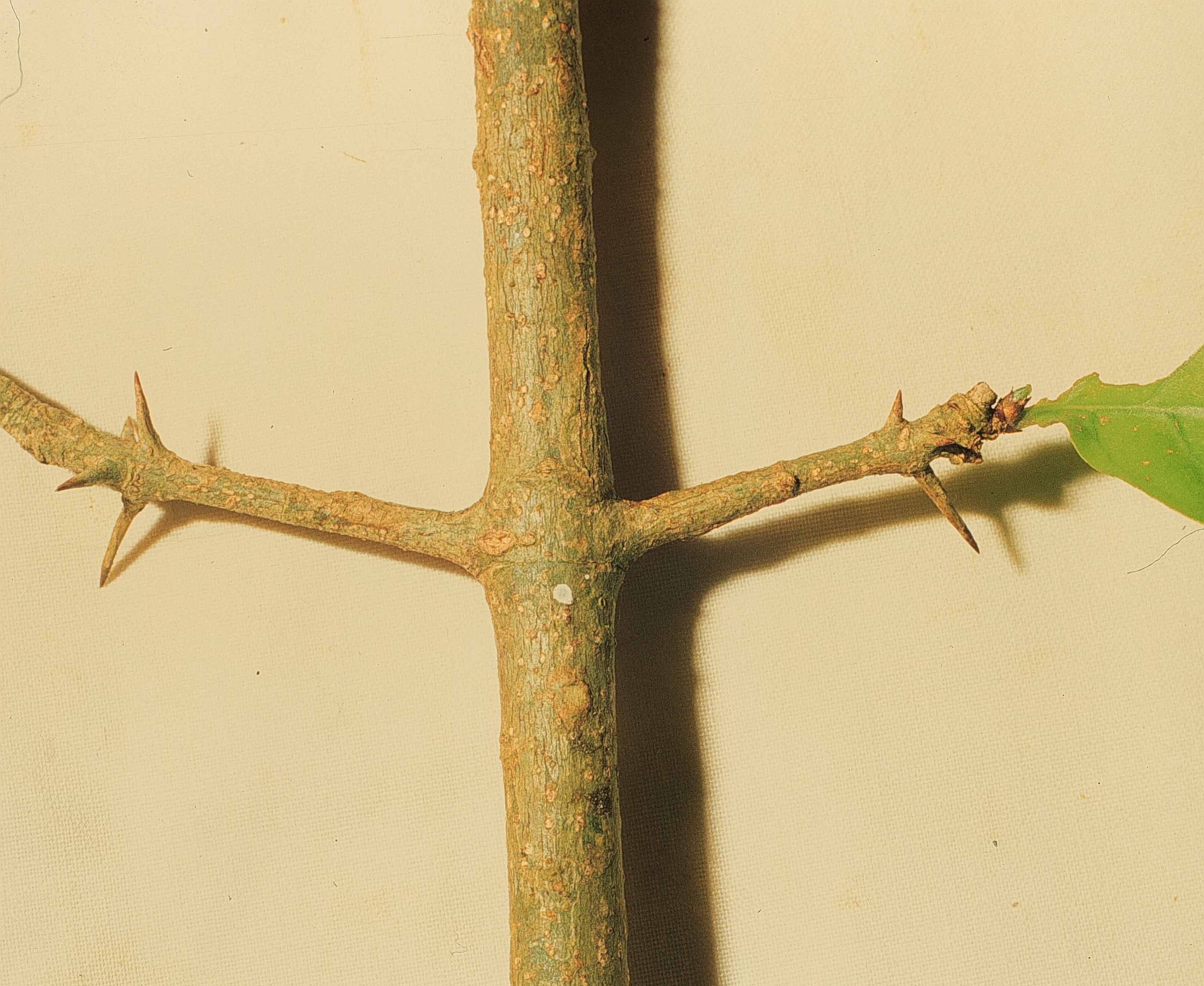 Con espinas a todo lo largo del tallo y las ramas.