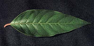 Simples y opuestas, de forma lanceolada y margen entero. Verde oscuro por el haz y café claro (ferruginea) por el envés, 9-16 cm de largo. Secretan látex en el peciolo cuando se arrancan.