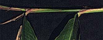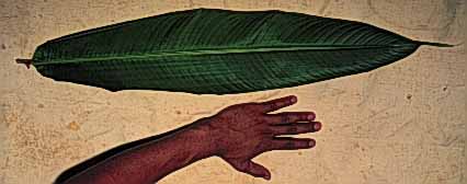 Simples, alternas, de forma lanceolada y margen entero. Largo aproximado de 70 cms.
