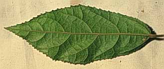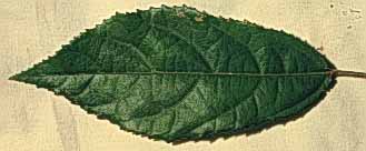 Simples alternas, de forma lanceoladas, 8-16 cm de largo, con peciolo cilíndrico de 1-2.5 cm de largo.