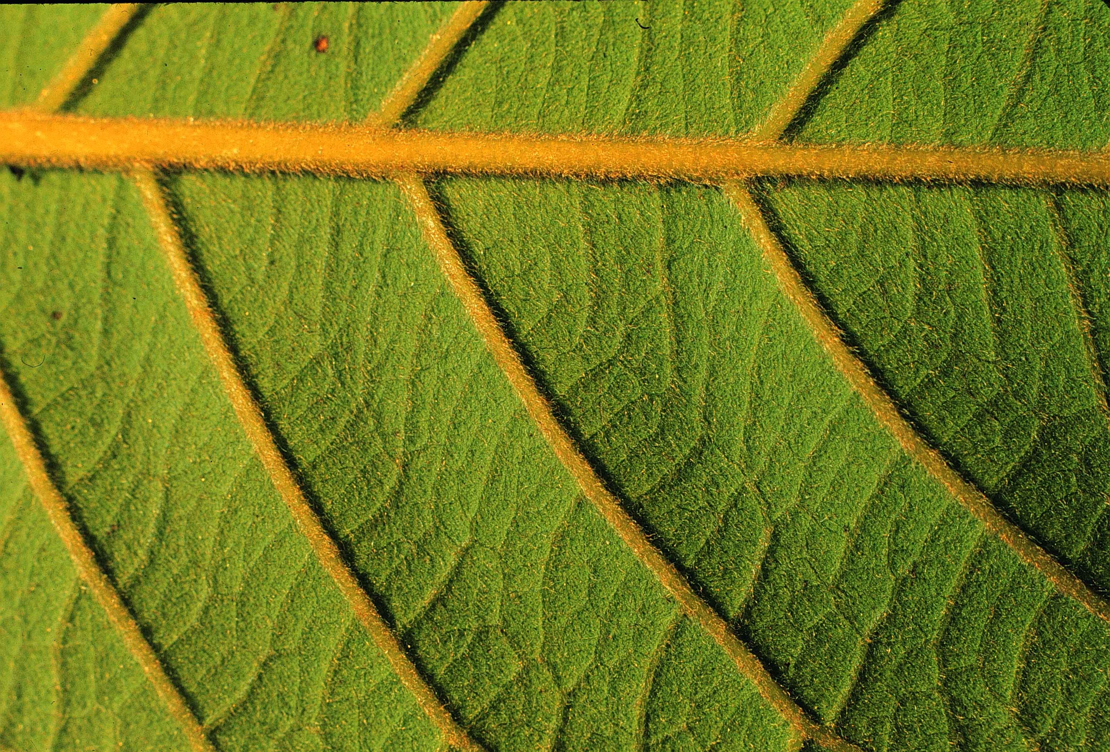 Simples opuestas, oblanceoladas, de 8 cm de largo, margen entero, peciolo acanalado de 0.5 cm largo.