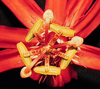 El caliz es blanco verdoso, la corola es roja. Son flores perfectas (ambos sexos presentes en la misma flor). Las inflorescencias están compuestas por una sola flor y son axilares. Abren por la mañana. La floración es en enero.