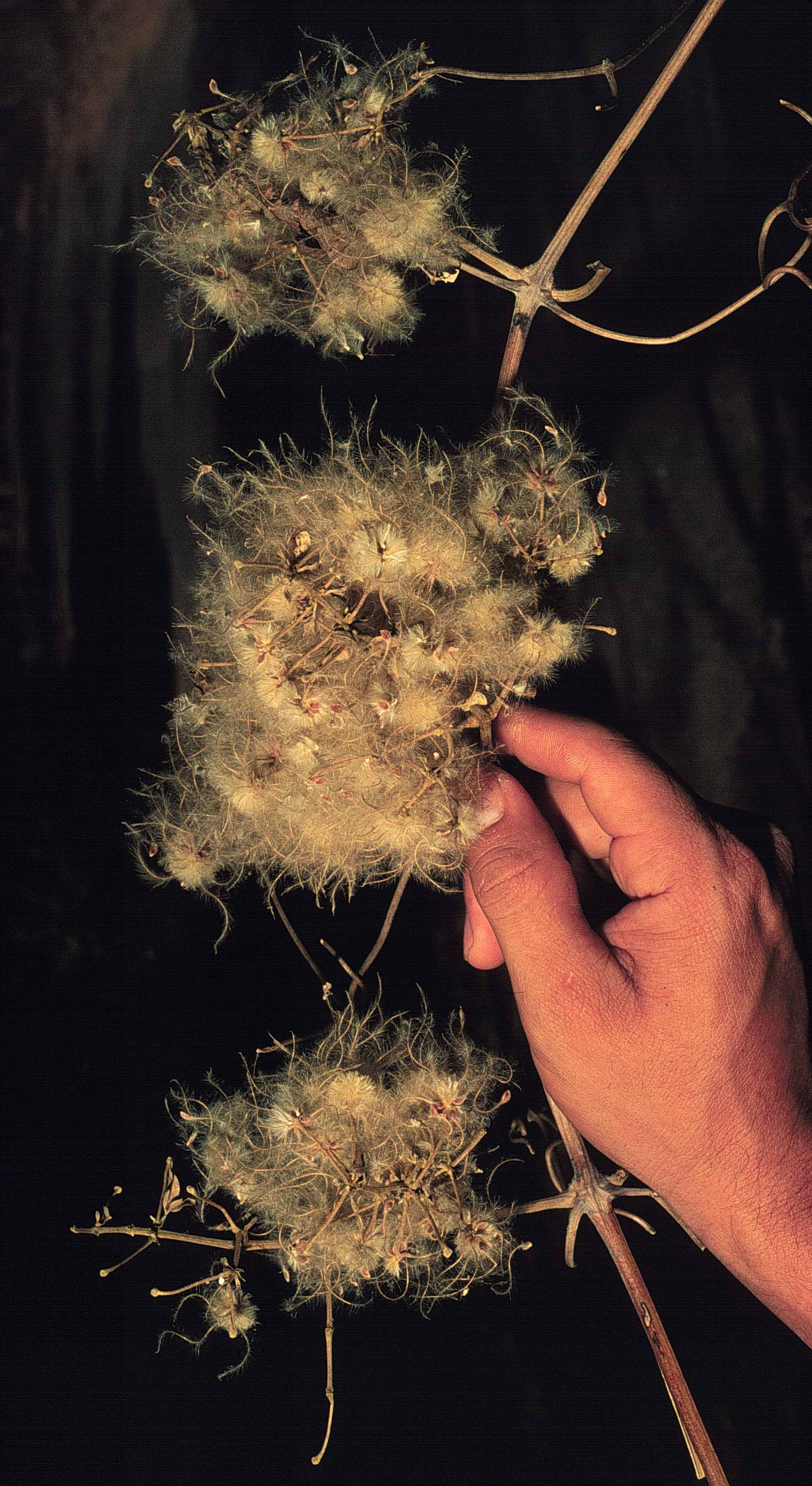 "Unica ranunculaceae en bosque seco, el género Ranunculus se encuentra en el Cerro de la Muerte y se extiende hasta Canada, tiene flores amarillas y crece en pantanos. Es una familia muy primitiva, y cuando la gente esta aprendiendo sobre el origen de las plantas, es uno de las angiospermas más primitivas utilizadas como ejemplo. Clematis no es como Ranunculus con flores blancas, sino que tiene unas estructuras en forma de dedos asociadas tanto a las flores como a los frutos, el bejuco tiene una hoja dividida y es muy característica por lo tanto en bosque seco no es posible confundirla basandose en la hoja, por eso la firma es la combinacion de las estructuras en forma de dedos junto con la forma de las hojas, solo se conoce una especie de Riodinidae alimentandose de esta planta (hojas), las Clematis son usadas como ornametales en jardines en Estados Unidos". (D.H.Janzen., Com. Pers)