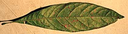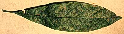 Simples, alternas, de forma lanceolada y margen entero. Largo aproximado de10-24 cm.