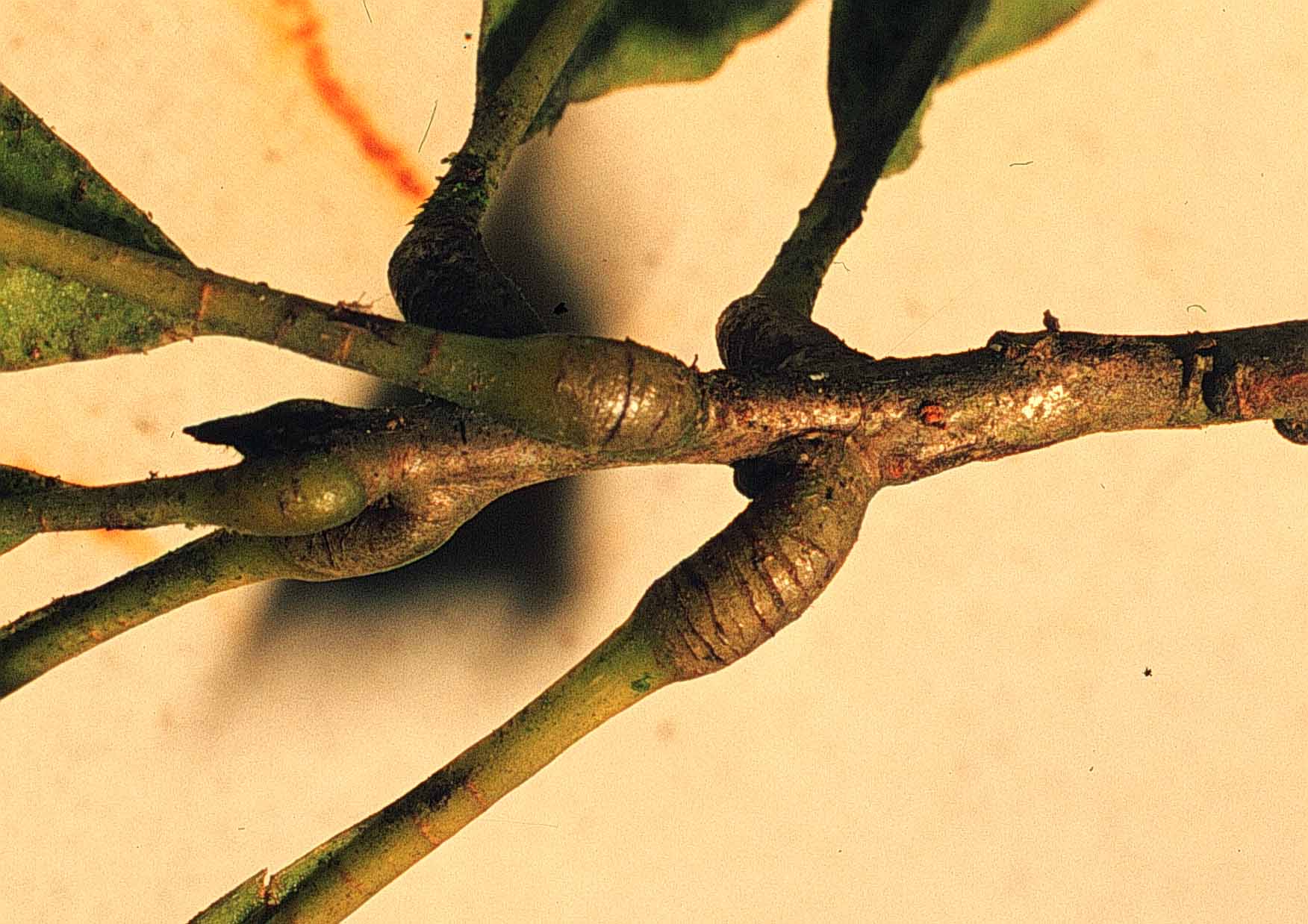 Corteza color café, lisa con liquenes y musgos a todo lo largo del tallo .