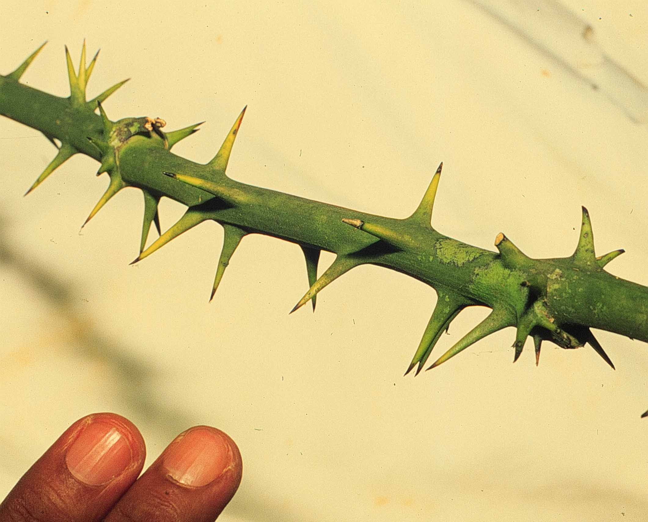 Verde claro con espinas muy duras.