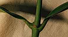 Simples opuestas, de forma lanceoladas, margen entero, peciolo aplastado por un lado.