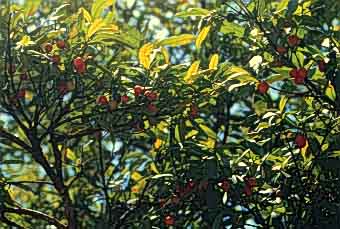 Garcinia mangostana, comúnmente conocida como mangostán es una especie introducida y cultivada.