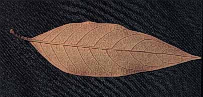 Simples y opuestas, de forma lanceolada y margen entero. Verde oscuro por el haz y café claro (ferruginea) por el envés, 9-16 cm de largo. Secretan látex en el peciolo cuando se arrancan.