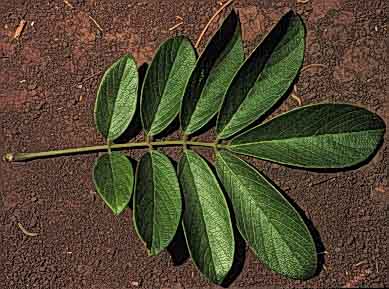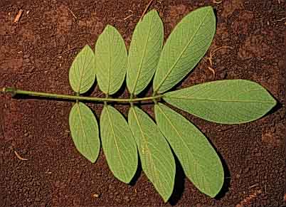 Legumbres de forma elíptica de 13-16 cm de largo y aproximadamente 3 cm de ancho, aplastado, con 1-2 semillas por fruto.