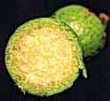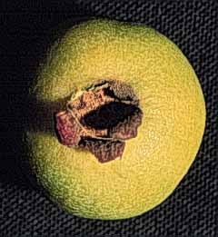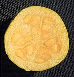 Fruto inmaduro color verde claro, maduro amarillo verdoso, de forma esférica de 1.5 cm delargo, con 2 cm de diámetro. Semillas de aproximadamente 0.3 mm. de largo.
