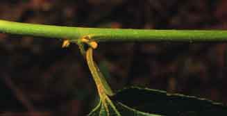 La corteza es de color café oscuro y tiene lenticelas muy evidentes.