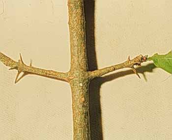 Con espinas a todo lo largo del tallo y las ramas.