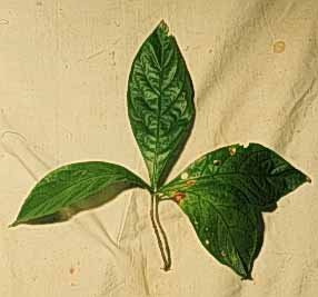 Simples,opuestas, de forma lanceolada y margen entero. Largo aproximado de8-20 cms.Peciolo cilindrico. Con estipulas interpeciolares.